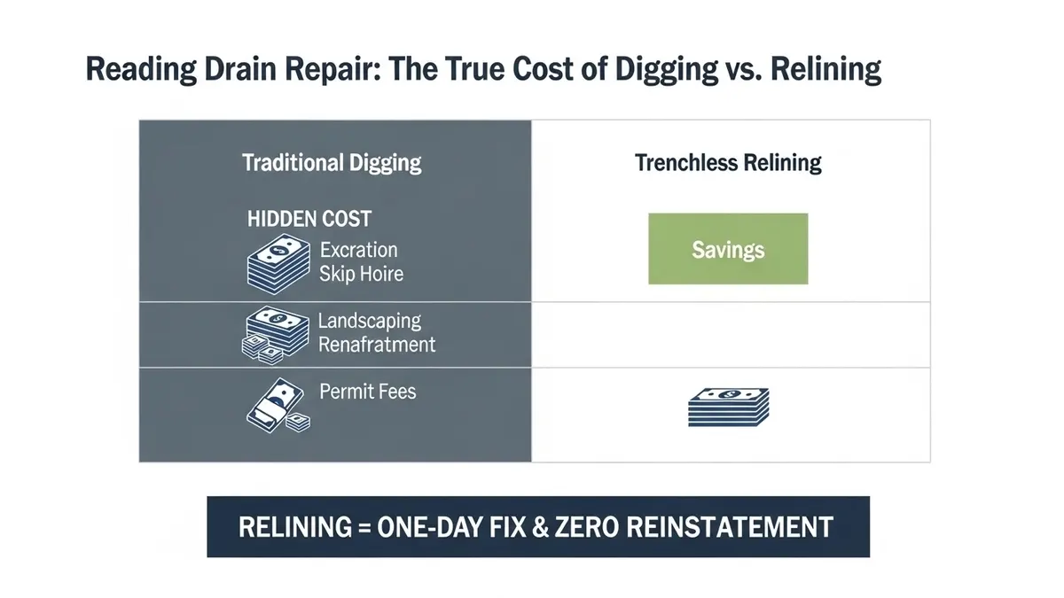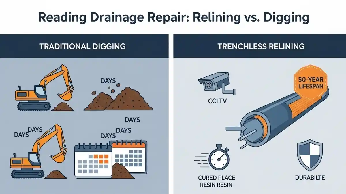 Avoid costly, messy excavations. Compare Westerham Drain Relining vs Digging to save your home, time, and money with our expert, minimally invasive, and durable no-dig repair solutions for local drains.